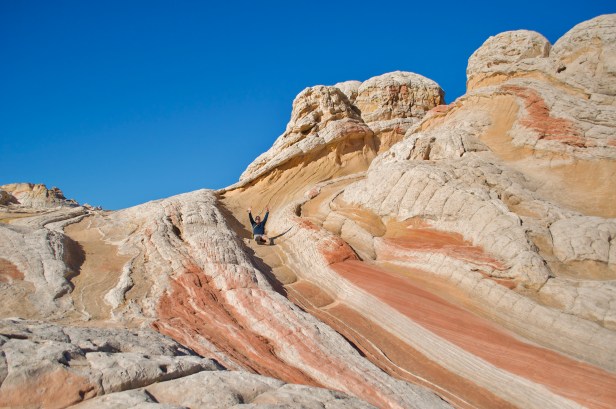 Located on the Paria Plateau of the Vermilion Cliffs, White Pocket impresses the most adventurous souls. The swirling, twisted, and contorted sandstone in reds, pinks and oranges contrast bleach-white pockets of limestone.