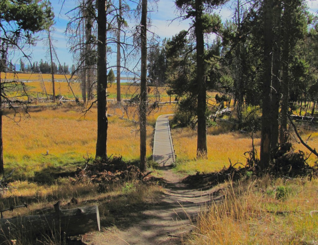 The trails in Yellowstone are magnificent. They take you over the tops of hot springs, through forests, and to awe-inspiring overlooks. They will never disappoint. What makes the trails unique in the autumn is the contrast of the golden-colored landscape, with the brilliant blues of the sky, lakes…and hot springs.