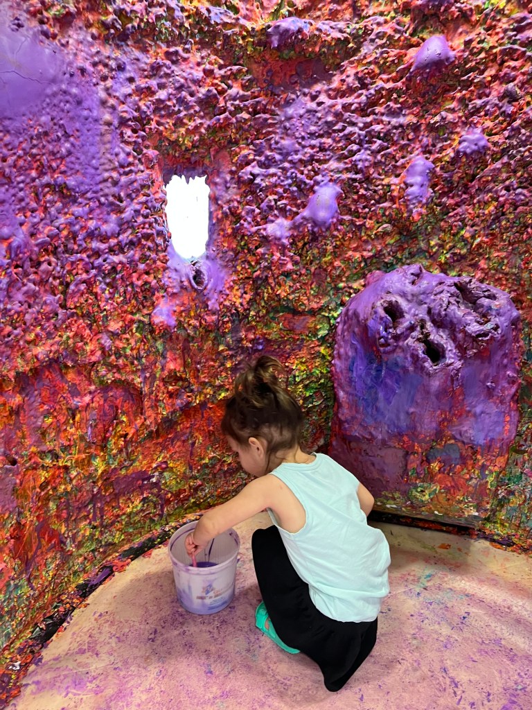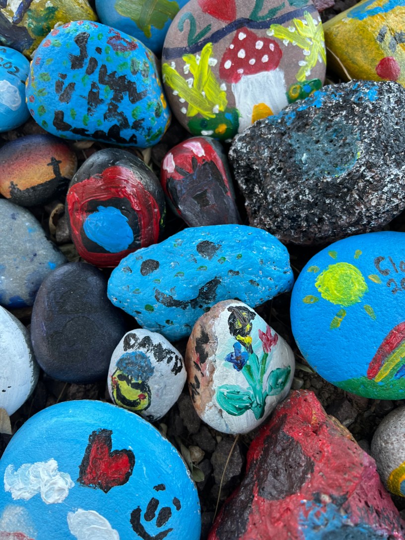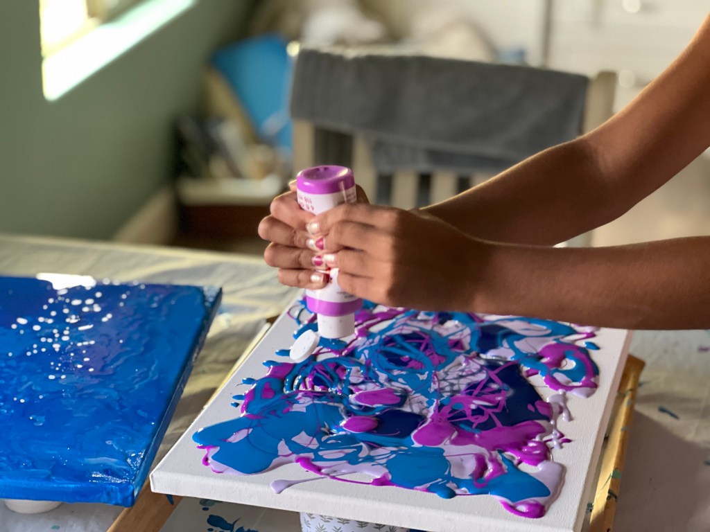 Next, was a project I have been wanting to try for quite some time: Acrylic Pouring. I thought it might be one of those easier than it looks projects, and when my grandkids discovered the paint I wondered if the room would quickly look like an art studio. I discovered, all you need is color to love, and a vision of where you want your paint to travel. It is pretty apparent there is a purple-lover amongst us. And in the process we discovered an ocean, a gem/geode, and earth. And contrary to my belief that it would be a chaotic mess, it was one of the most calming activities we have ever done.