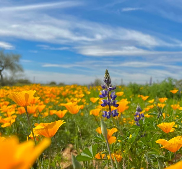 Today: Wildflower season in the southwest, is much like the leaf-peeping in the east. The difference? It is not promised. This year all the conditions have lined up perfectly and the flowers are trickling in. To me it feels like one of our brilliant sunsets set itself down on our landscape. And like a pop of confetti, our neighborhoods are quite prolific as well.
