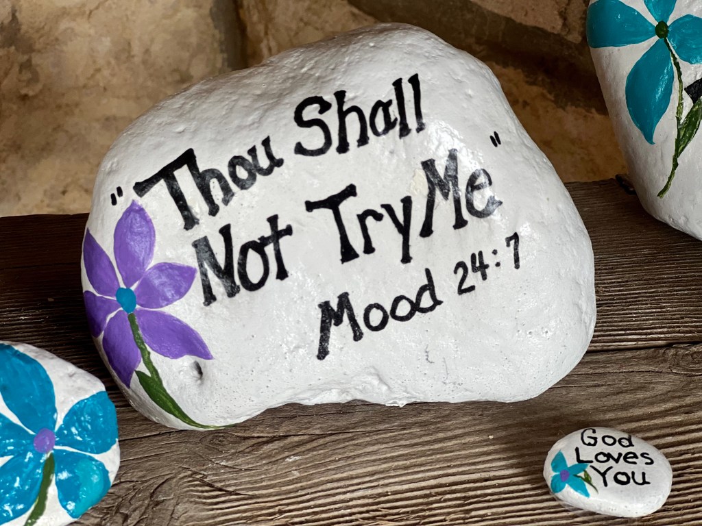 PS. I found this painted rock at the entrance to, Love Creek Orchards, Apple Pie Cafe’ during our Texas travels. I hope it made you smile…too.