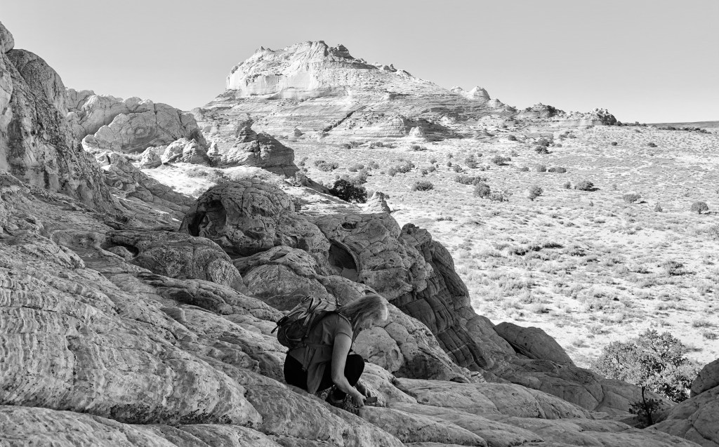 To begin, I will take you on a brief return to White Pocket Recreation Area. This remote region of the Paria Plateau near the Utah border, brings us swirling, multicolored formations of sandstone. This one square-mile dot on the map should not be overlooked, if you can get there. The gnarly directions, quicksand, and incapable transportation has many put up their hands in defeat. Humbled was my first impression of the landscape. A closer look revealed curious cracks, and crevices that had me studying what was underfoot.