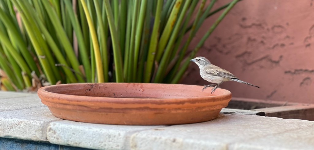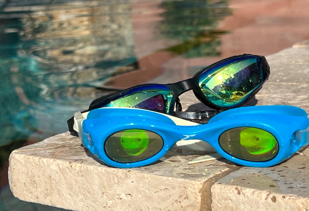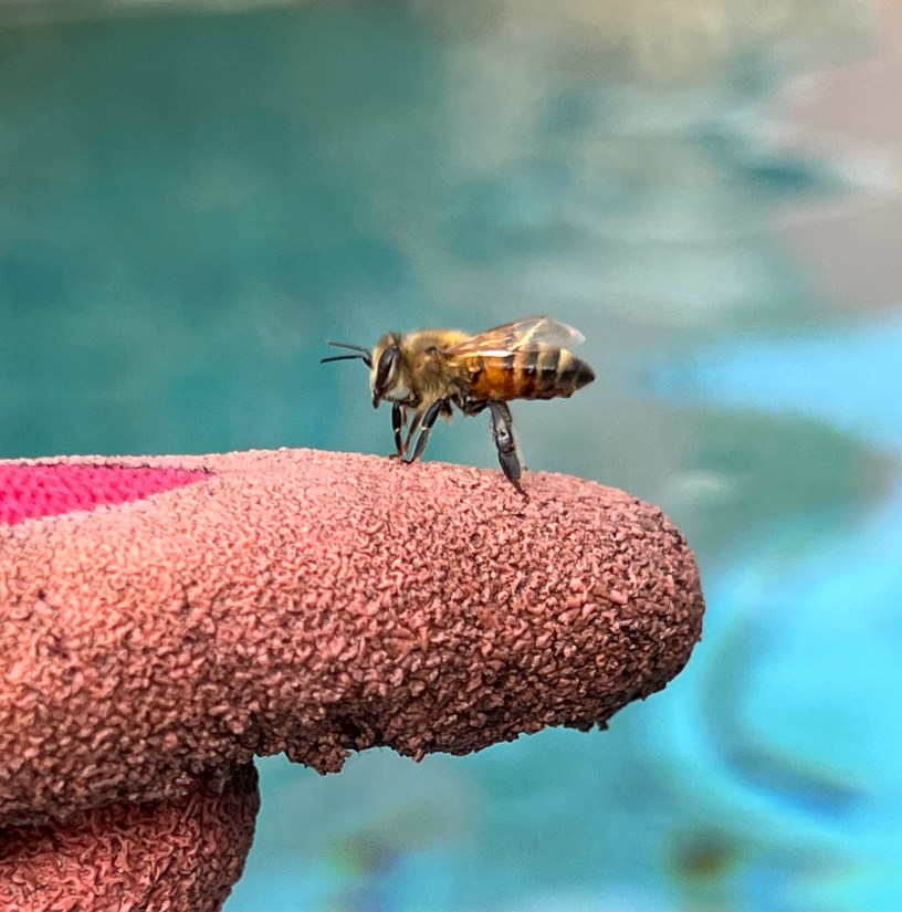 Insignificant in the morning light, I swim/walk the length of our pool. I look for the baby lizard who has taken up residence in the Bird-of-Paradise hedge. I tiptoe past a floating feather wondering how it stays dry, and I smile at the goggles, evocative of summer and grandchildren. The birds seem to enjoy the invitation to stay, and I faithfully rescue the clumsy bees.