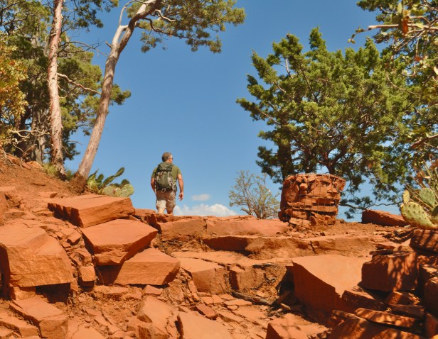 This one is for me. Together, my husband and I spend a lot of time outside, exploring the rocky hillsides of Sedona. He always leads for a few reasons. One, I can’t stand having him on my shirttails, hovering. The other is defined in this next photo. I wait and watch for moments just like this. He is framed by the elements of nature. I also love seeing the direction he is looking.