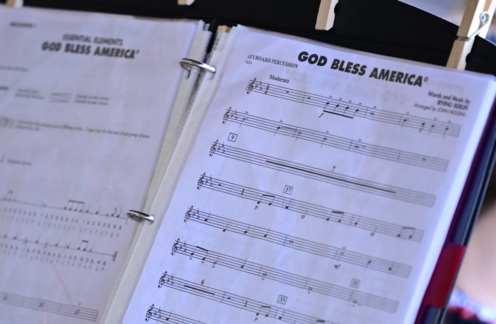 I was on my way to a Veterans Day assembly at our local school. Sometimes pieces of the puzzle tell of an event or a moment in time. The white gloves of the Honor Guard, show formality of the ceremony. The flags are indicative of a patriotic event, and the sheet music speaks for itself.