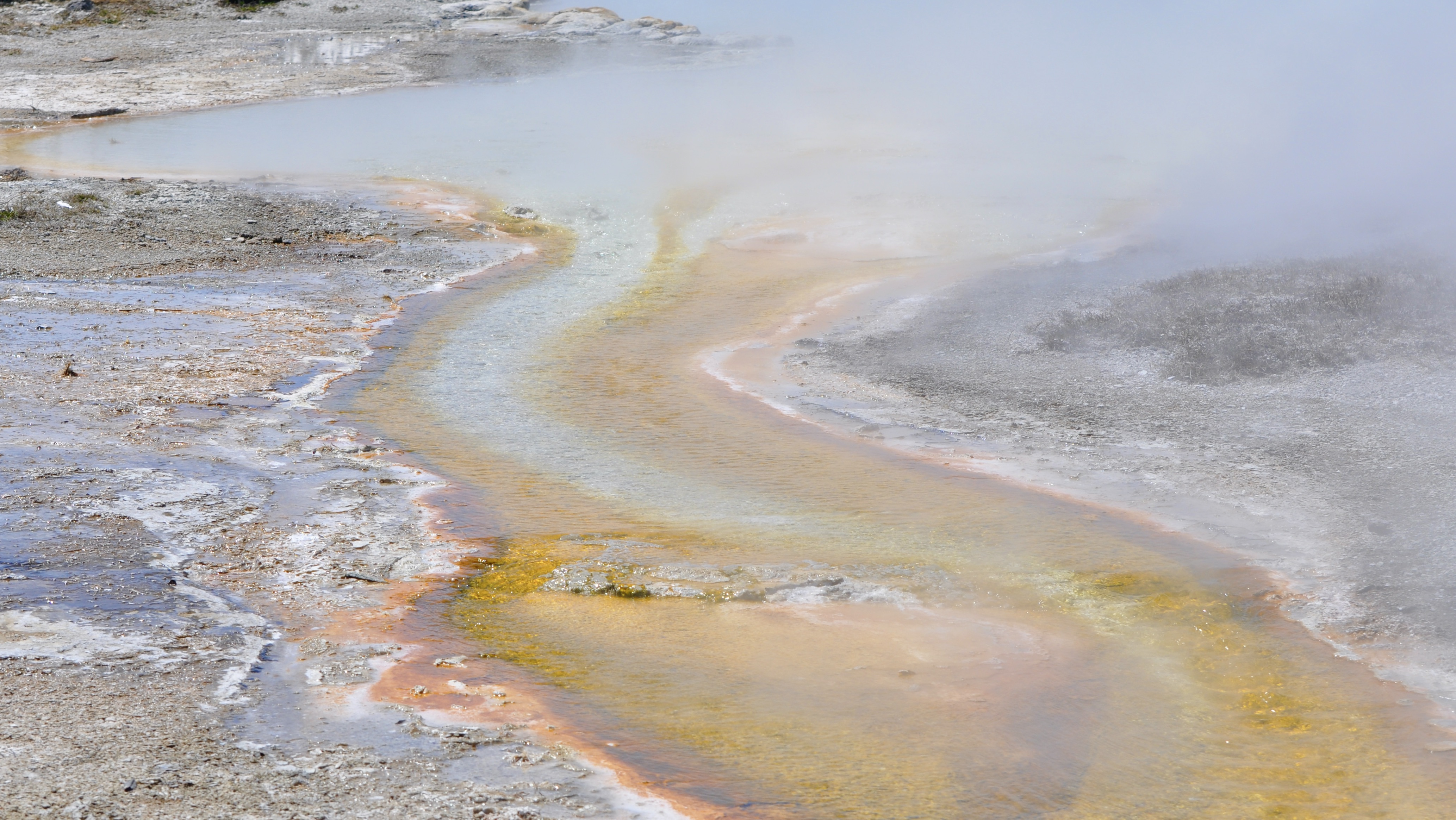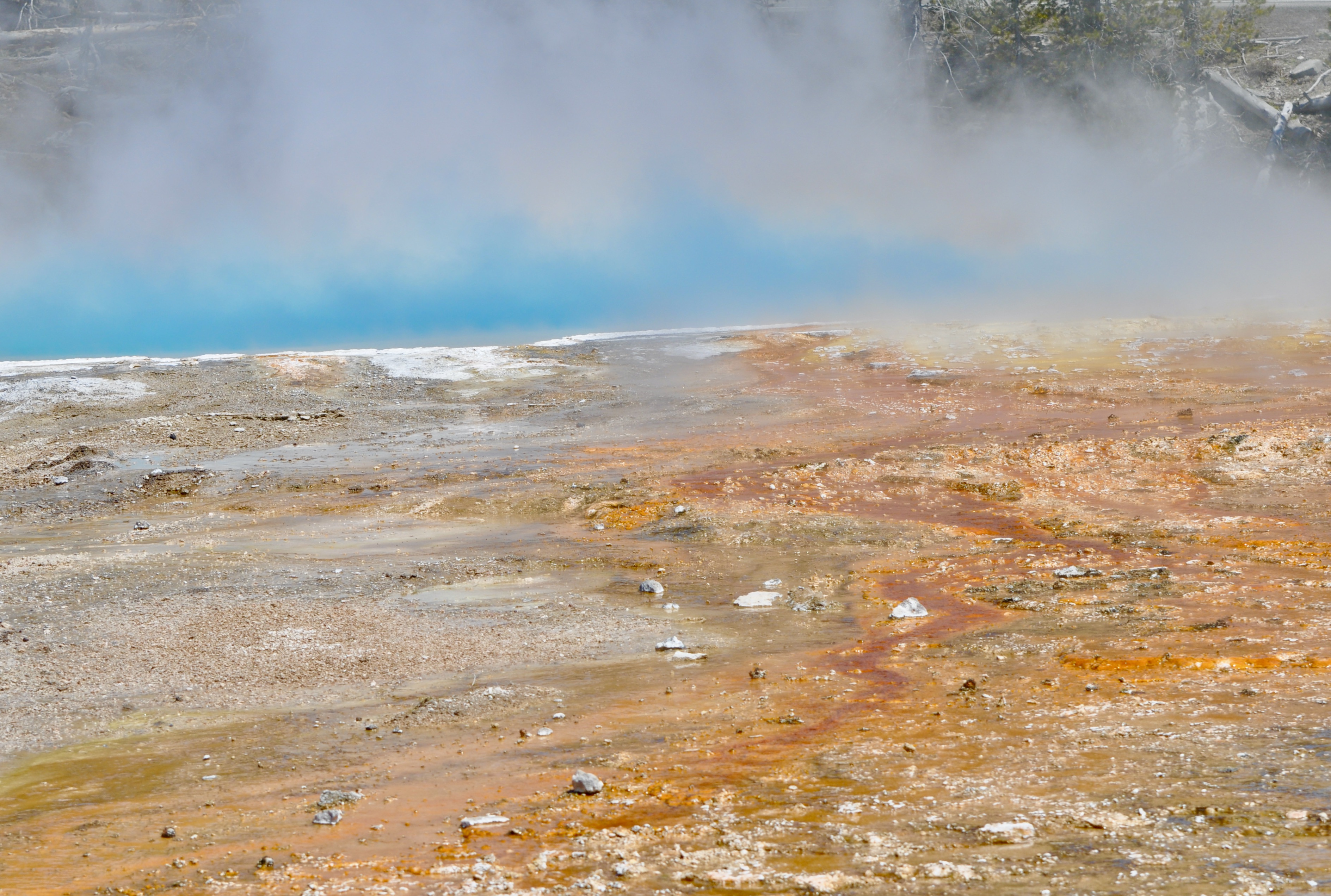 On to Yellowstone, where nature is presented in it’s most spectacular showing. The colorful hot springs are fed from underground runoff. Their colors are in direct correlation to the heat-loving microbes that thrive in specific temperatures. Most of us know, while blue mimics the sky and thought of as a cooler color, it is the hottest of hot springs.
