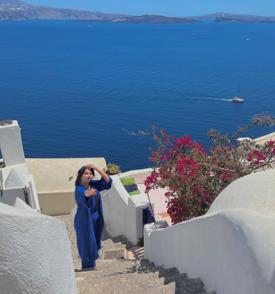OK, the lady below kinda steals the show on her own, but the ruins of Ephesus do compliment her space.